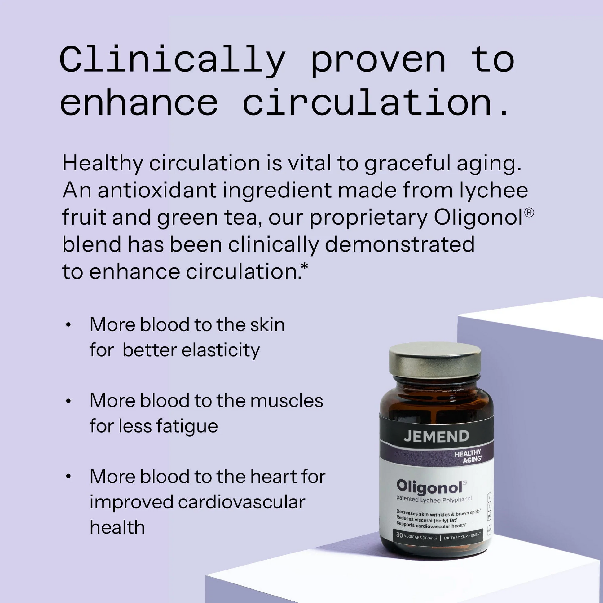Healthy circulation is important to graceful aging because blood brings life-giving oxygen and nutrients to every cell of your body. If your blood’s not moving through your body efficiently, you’ll feel the effects all over. Oligonol® is just what you need to keep your blood moving.