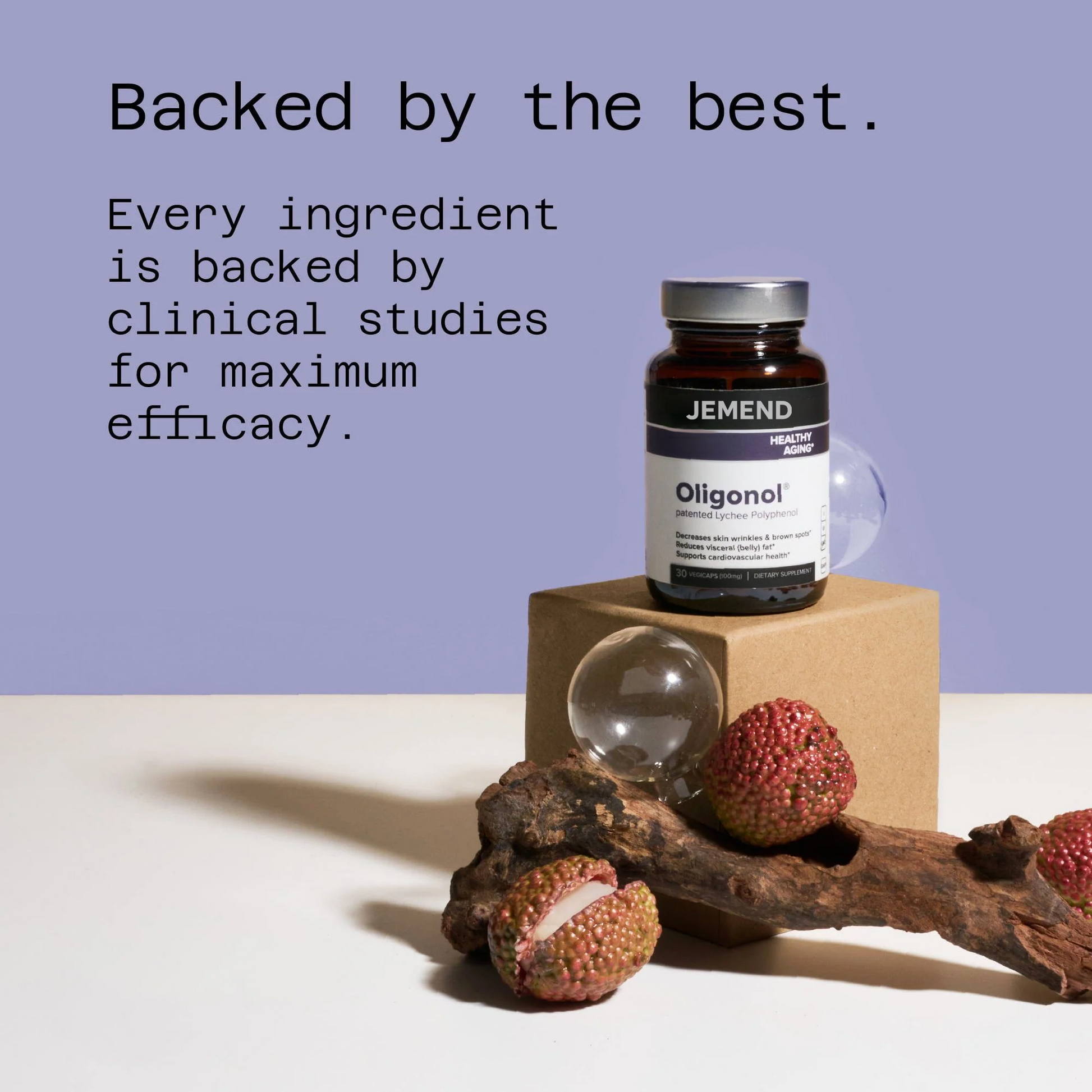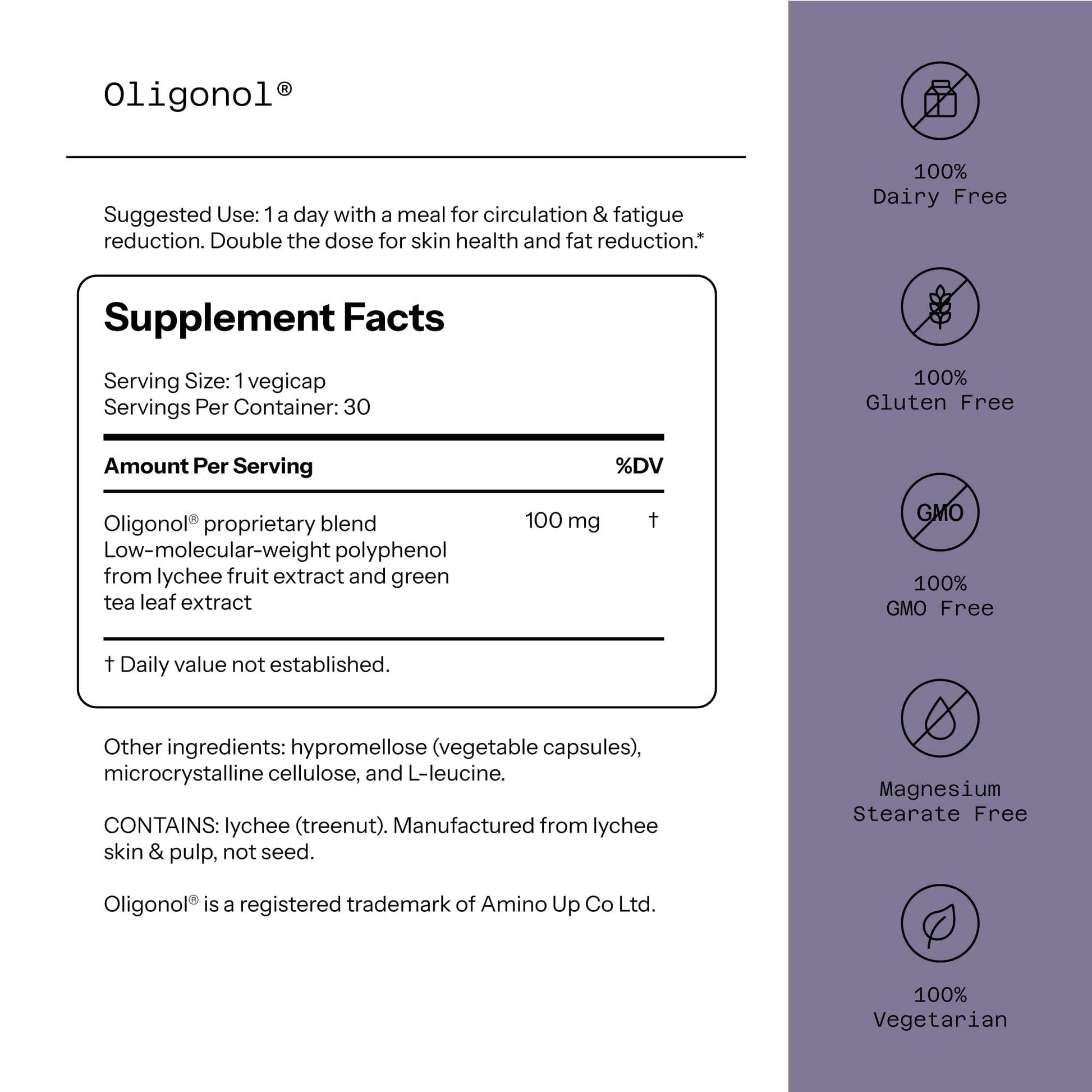 Age amazingly, with Oligonol®. Made from lychee fruit and green tea, Oligonol® targets aging at its source to decrease skin wrinkles and brown spots, lessen fatigue, reduce visceral (belly) fat, and support cardiovascular health.*